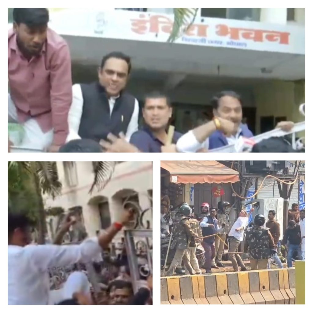 BJP in MP violently retaliates against AI summit protests, pelts Congress offices with stones, leaves heads broken