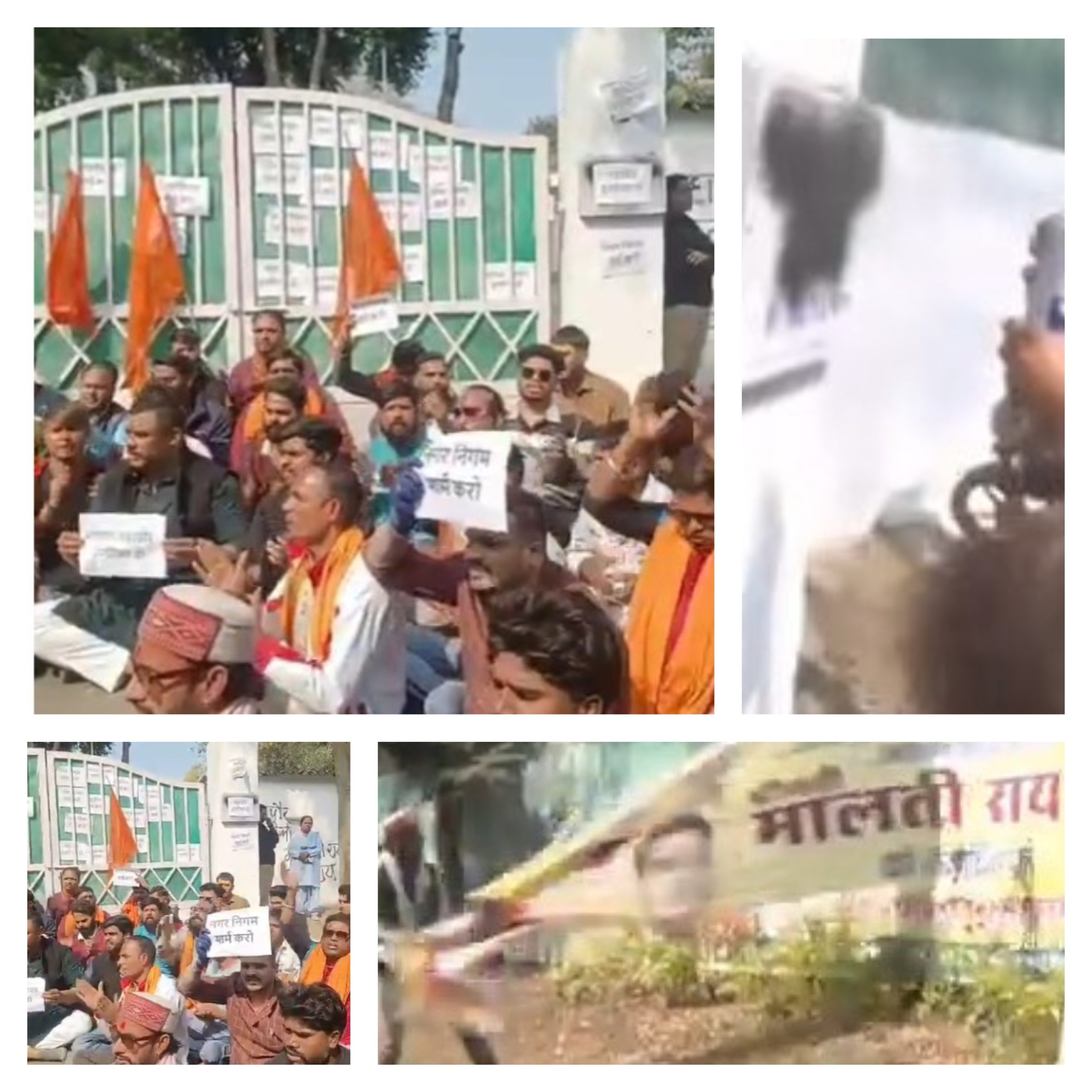 भोपाल नगर निगम की महापौर मालती राय से अब हिंदू संगठन सवाल कर रहे हैं। उनकी वजह से दिसंबर में मांस का ट्रक पकड़ा गया था मगर उन्हें ही असलम चमड़ा की गिरफ्तारी या एफआईआर की जानकारी तक नहीं लगी और गुपचुप अंदाज में कार्रवाई कर दी गई। बजरंग दल अब इस मामले में महापौर को घेर रहा है और बुधवार को उसके कार्यकर्ताओं ने महापौर के सरकारी बंगले पर जमकर हंगामा किया। बंगले के बाहर लगे महापौर के पोस्टर फाड़ दिए तथा नेम प्लेट पर कालिख पोत दी। यही नहीं सदबुद्धि के लिए काफी देर तक बंगले के प्रवेश द्वार पर ही हनुमान चालीसा पाठ किया।