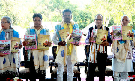 आदिम-जाति कल्याण मंत्री ओमकार सिंह मरकाम आज भोपाल स्थित इंदिरा गाँधी मानव संग्रहालय में आदिवासी भाषा, संस्कृति और समग्र विकास पर केन्द्रित तीन दिवसीय राष्ट्रीय संगोष्ठी के समापन सत्र में शामिल हुए।